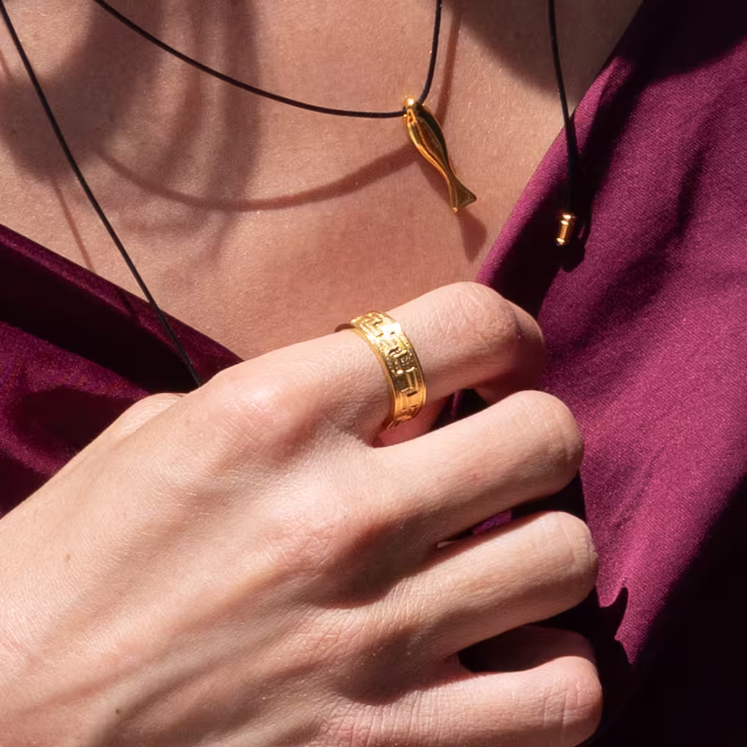 Inspirée de l’art antique, cette bague rend hommage à l’un des motifs les plus emblématiques de la culture grecque : le méandre.