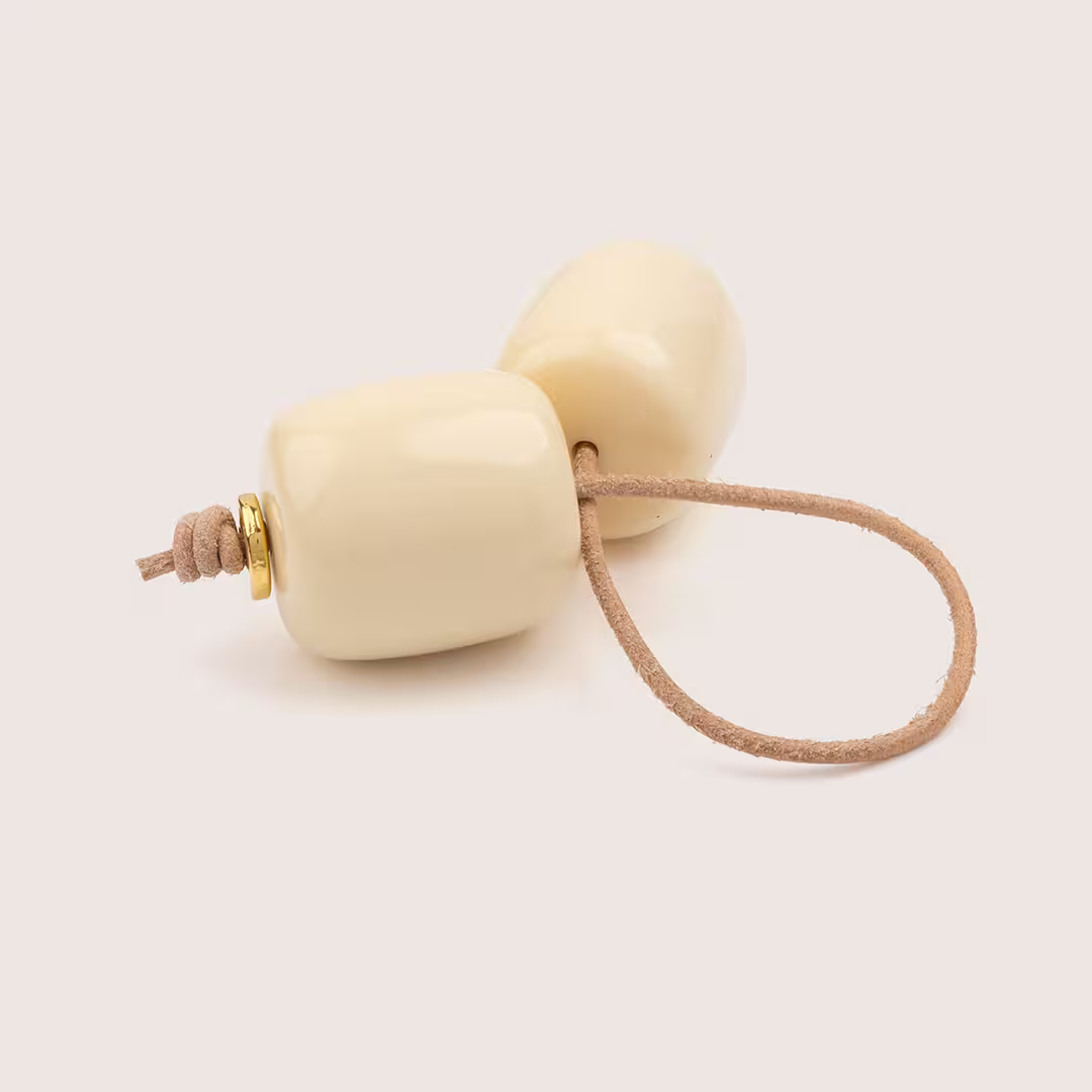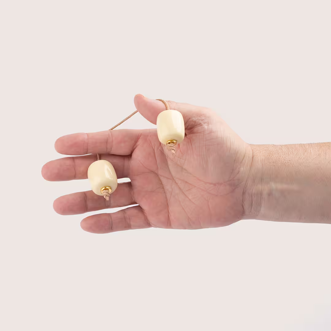 Composé de 2 perles en résine, reliées par un cordon en cuir naturel, solide et souple pour assurer un maniement agréable et durable, il est disponible en 3 coloris : un noir mat, un joli miel marbré et un beau crème profond. Léger et ergonomique, il offre une prise en main idéale pour débutants comme pour joueurs expérimentés.