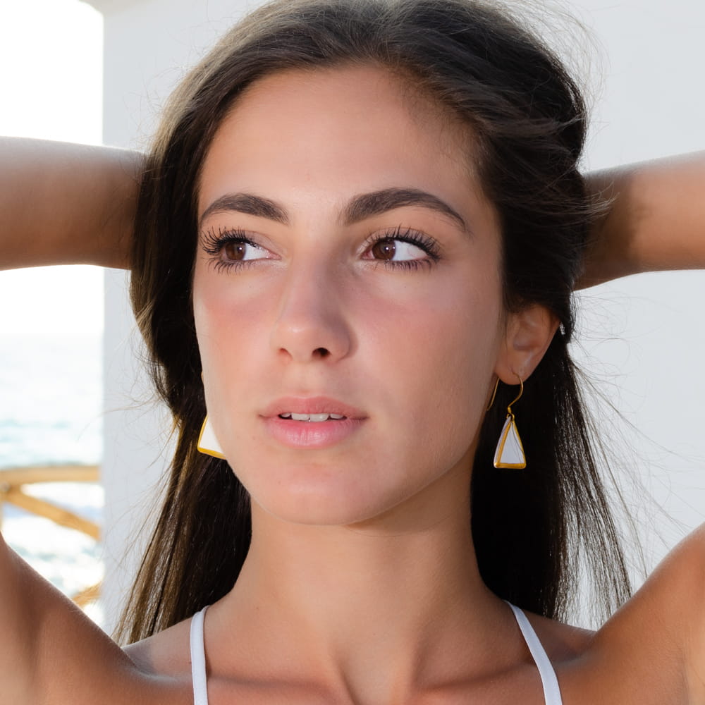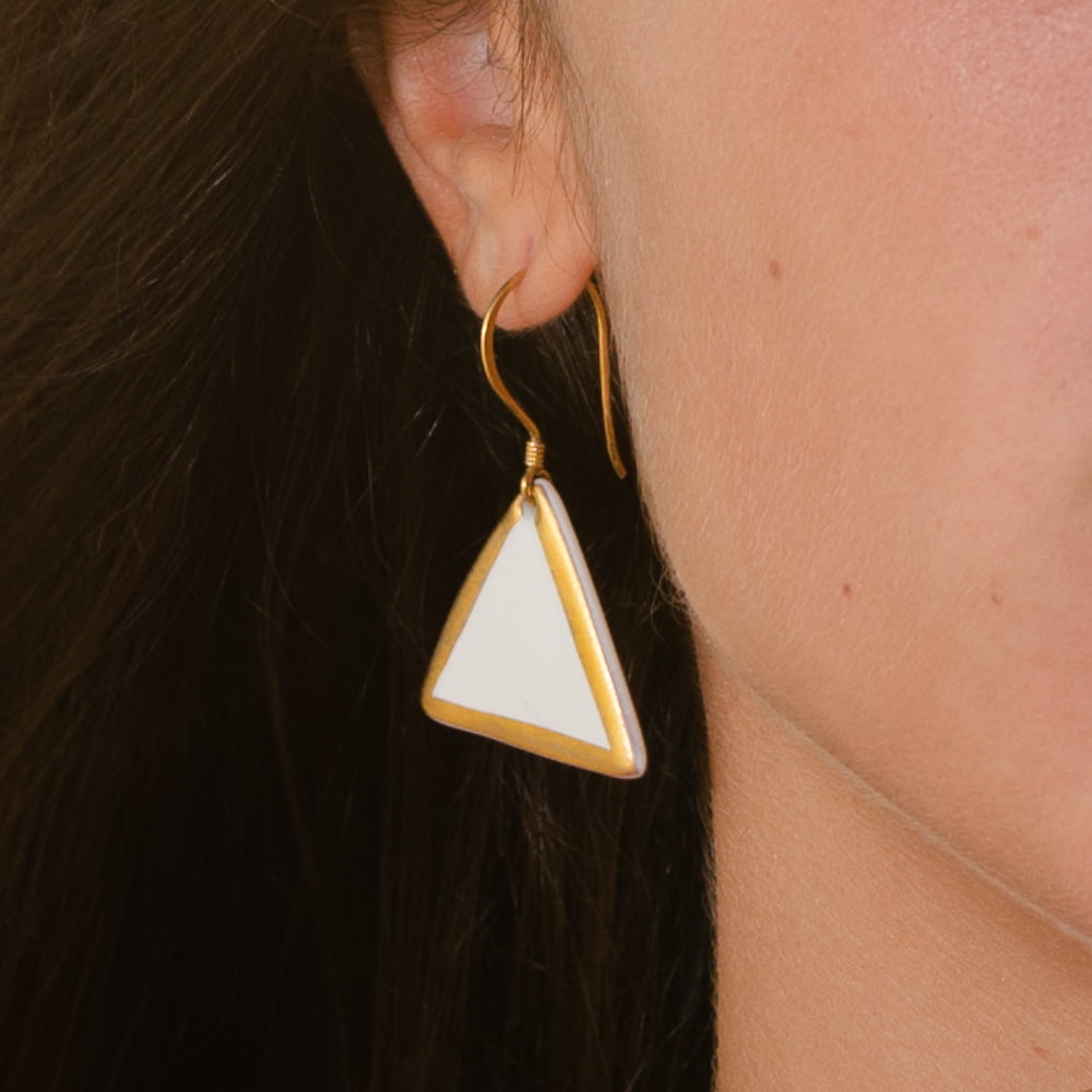 Les boucles Lydia en porcelaine et or, de merveilleuses pyramides pendues à vos oreilles.