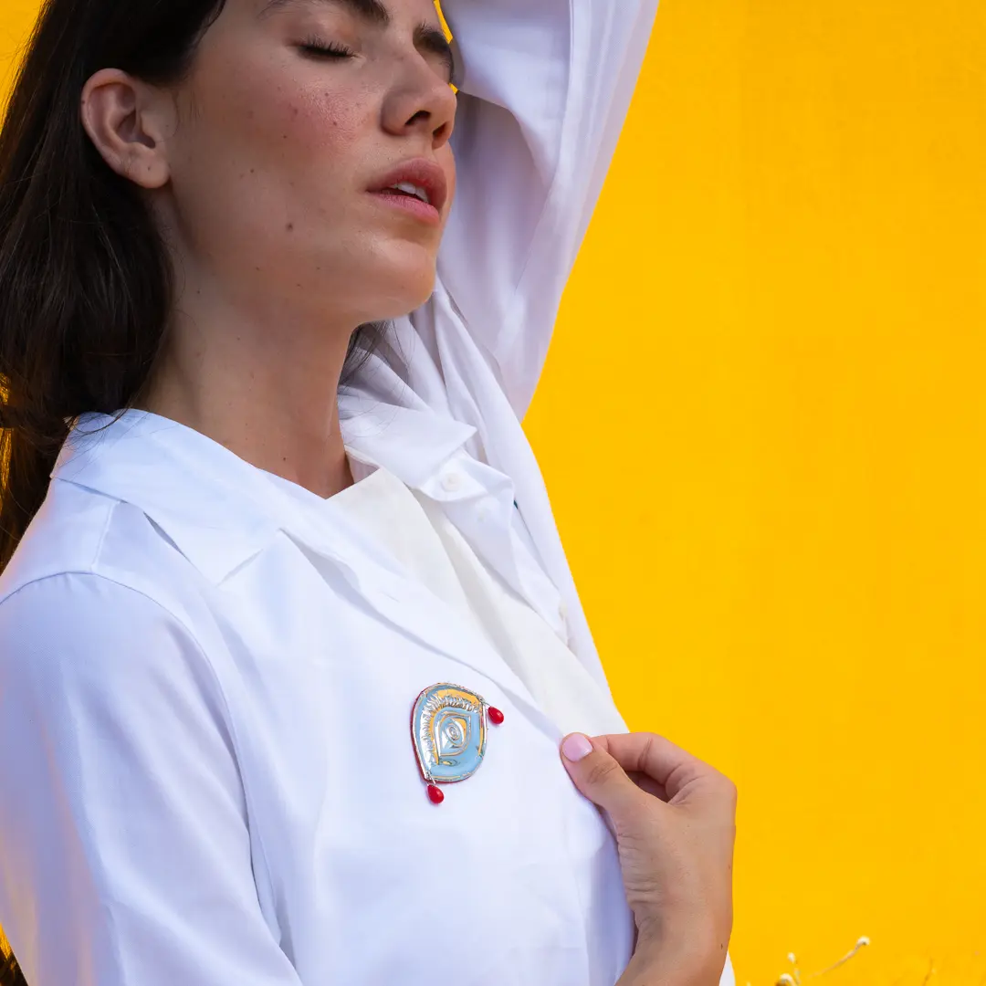 Cette broche habillera de façon originale vos vestes, robes ou même une chemise d’homme ou un simple T-shirt blanc porté sur un jean.