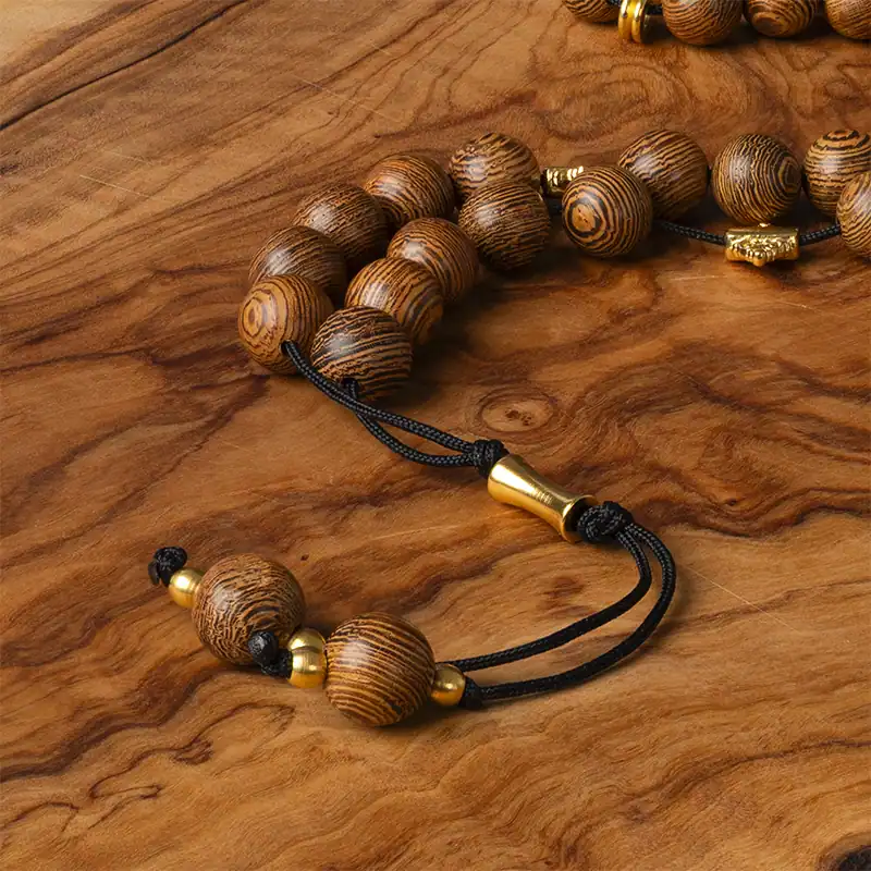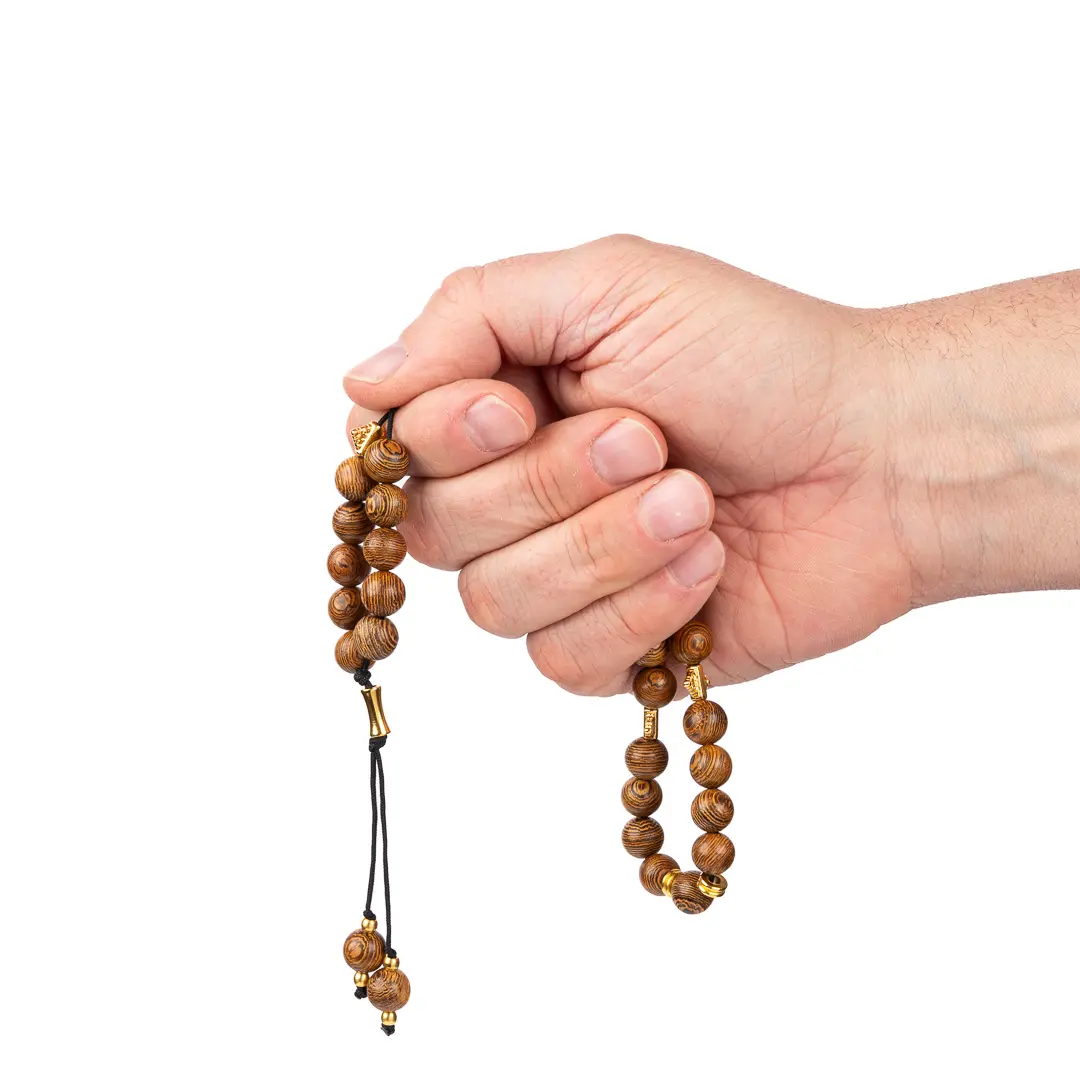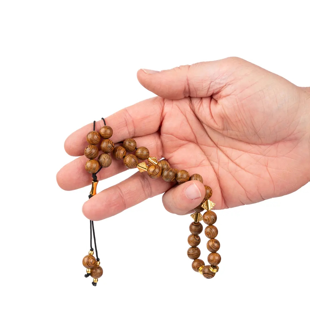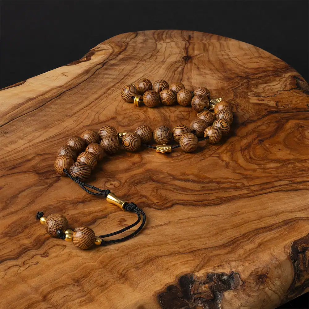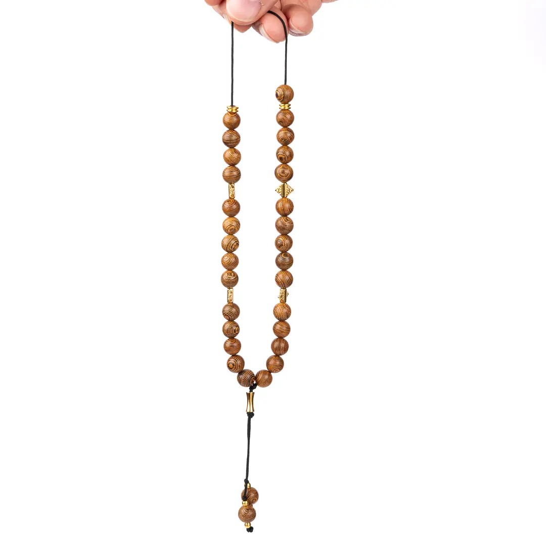 L’aspect unique et texturé du bois fait de chaque perle un élément distinct, garantissant qu’aucun komboloi ne ressemble exactement à un autre. Les détails dorés, fins et subtils, ajoutent une touche de sophistication et une brillance discrète, rehaussant l’élégance de l’ensemble.