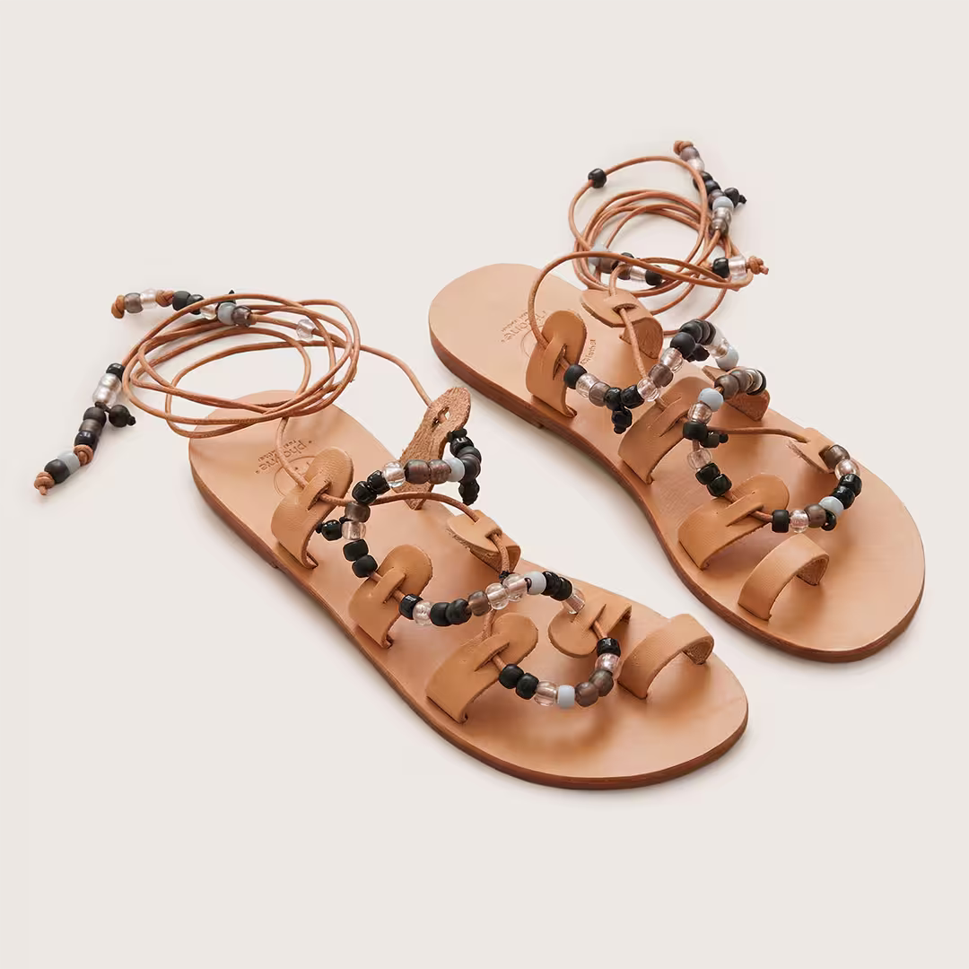 Ornées de perles dans des nuances de noir – mat, brillant, givré, lisse ou à facettes – avec de subtiles touches de gris et de transparence, ces sandales gladiateur attirent le regard tout en restant élégantes et discrètes. Elles font partie de la famille des Margarita, composée des Margarita Neon, Natural ou encore Margarita blanches.